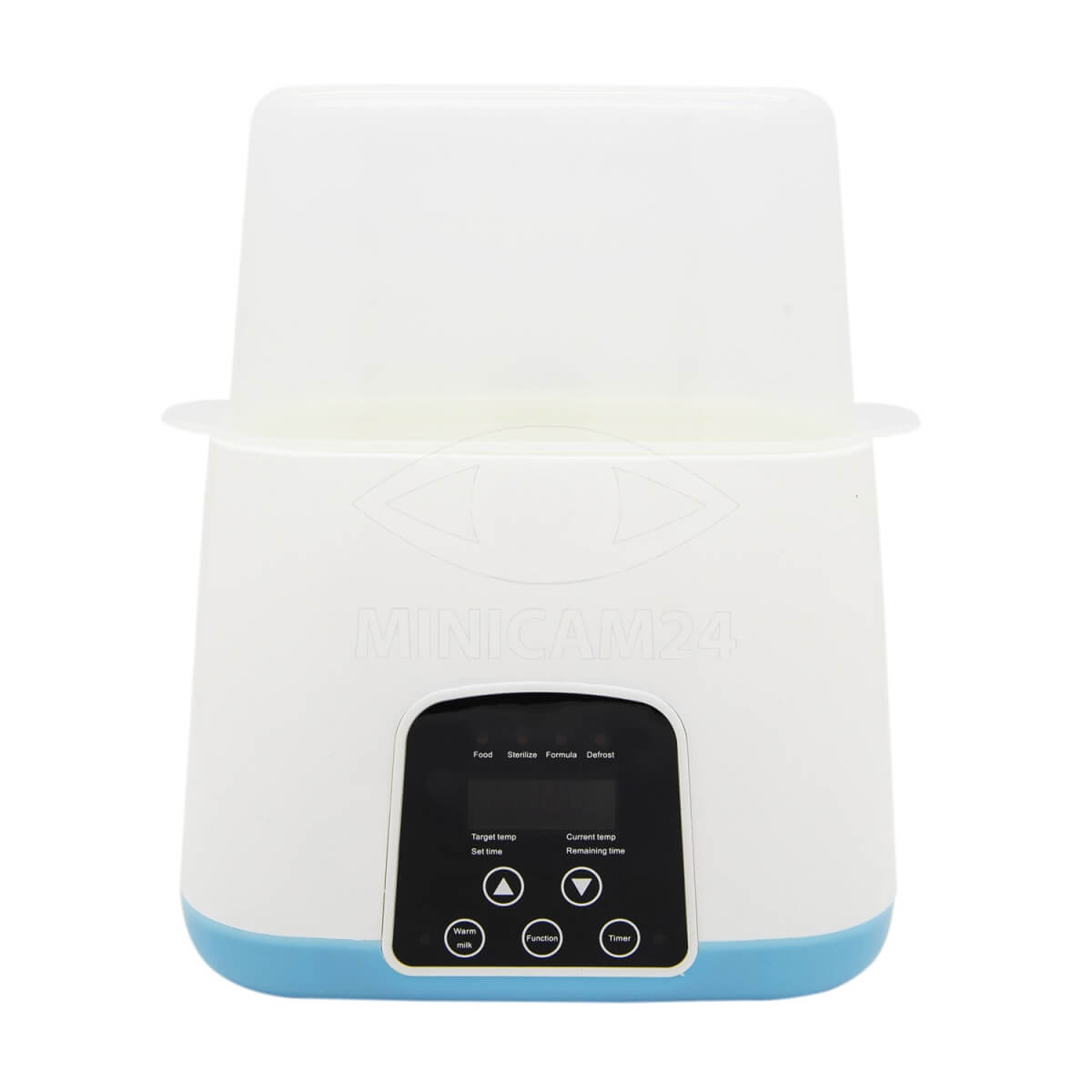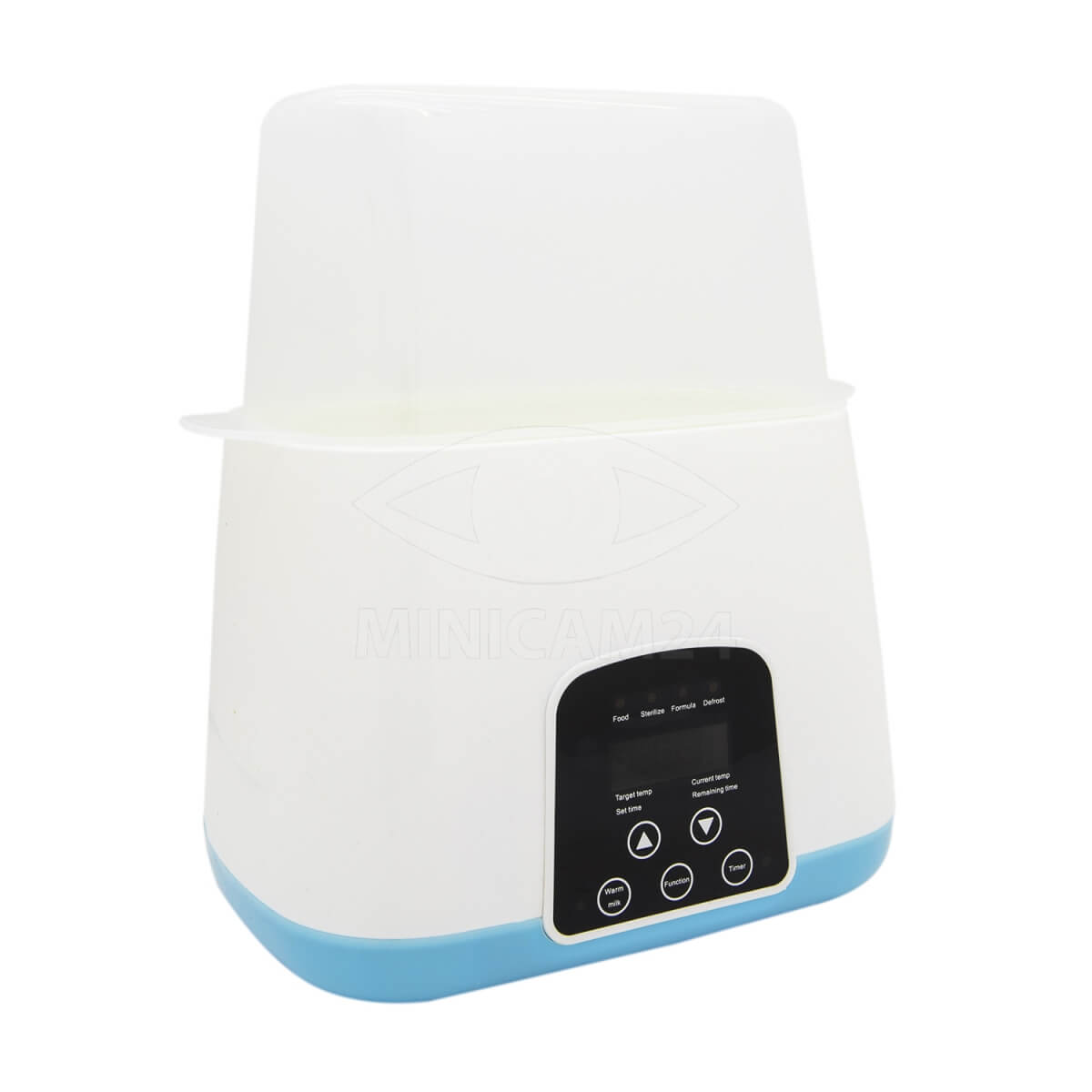 Подогреватель детского питания рассчитан на загрузку 2 бутылочек. Устройство имеет пять температурных режимов, позволяющих размораживать и разогревать продукты, поддерживать заданную температуру и стерилизовать емкости. Прогрев осуществляется по принципу водяной бани, его температуру можно настроить самостоятельно от 30 до 100 градусов. В комплекте есть аксессуары для извлечения горячих бутылочек, их мытья и хранения. Питается подогреватель от сети переменного тока.